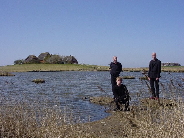 De Dichters uit Epibreren poseren gaag in waterpartijen. Klik op de foto voor verdwijning van twee van de drie.