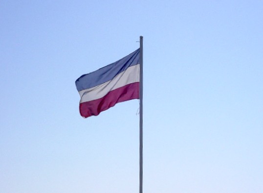 Uit protest tegen de bizarre contemporaine Nederlandse politiek hangt men anno 2003 te Epibreren het vaandel ondersteboven.