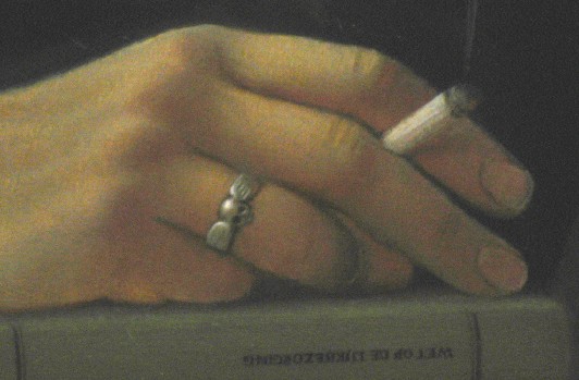 en 19.15 uur, in de rookafdeling van het café in de belastingvrije