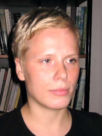 BIOGRAFIE 'Ik ben geboren in Antwerpen op 5 feburuari 1979. Een koude maandagavond was het. 'Het moet ergens geweest zijn tussen niet vroeg meer en nog niet heel laat,' zei mijn moeder toen ik haar naar het uur van mijn geboorte vroeg. Sindsdien beeld ik me in dat ik geboren ben precies op de seconde van het aanspringen van de lantaarns. Ik studeerde Romaanse in Brussel, vertoefde daarna een jaar in Gent en kwam uiteindelijk naar de Scheldestad terug. Schrijven is het enige constante in mijn leven. Ik heb het altijd al gedaan. Aanvankelijk enkel proza, daarna ook poëzie. Van kindsbeen af ben ik een dwangmatig piekeraar. Schrijven is hier geen remedie tegen. Integendeel, schrijven is voor mij de verrukkelijkste variant van piekeren.' ![]() © Ruth Lasters, 2004 Gedichten van Ruth Lasters verschenen in Lava, Deus ex Machina en EnErIs. In september 2002 won zij de Antoonprijs voor de cyclus 'Over gordijnen', die is verschenen in Gierik NVT (herfst 2002) en die nog te lezen is op www.gierik-nvt.be. Voorts levert zij een driemaandelijkse bijdrage, in dichtvorm, aan het e-zine Stroom van de Antwerpse poëzie-activist François Vermeulen. In januari 2005 worden gedichten van haar opgenomen in de bloemlezing 21 dichters voor de 21ste eeuw, die bij Uitgeverij P gaat verschijnen. Proza van Ruth Lasters verscheen in Deus ex Machina,