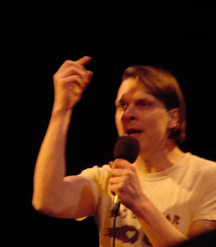 (Deutschland, 1969) Landete nach einer Karriere als Sänger der Punkband 'Amoklaufende Frittenbuden' in der deutschen Slamszene.