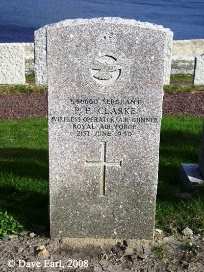 Sergeant (W.Op./Air Gnr.) Patrick F. Clarke, RAF 546660, 254 Sqdn., age unknown, 21/06/1940, Lerwick New Cemetery, UK